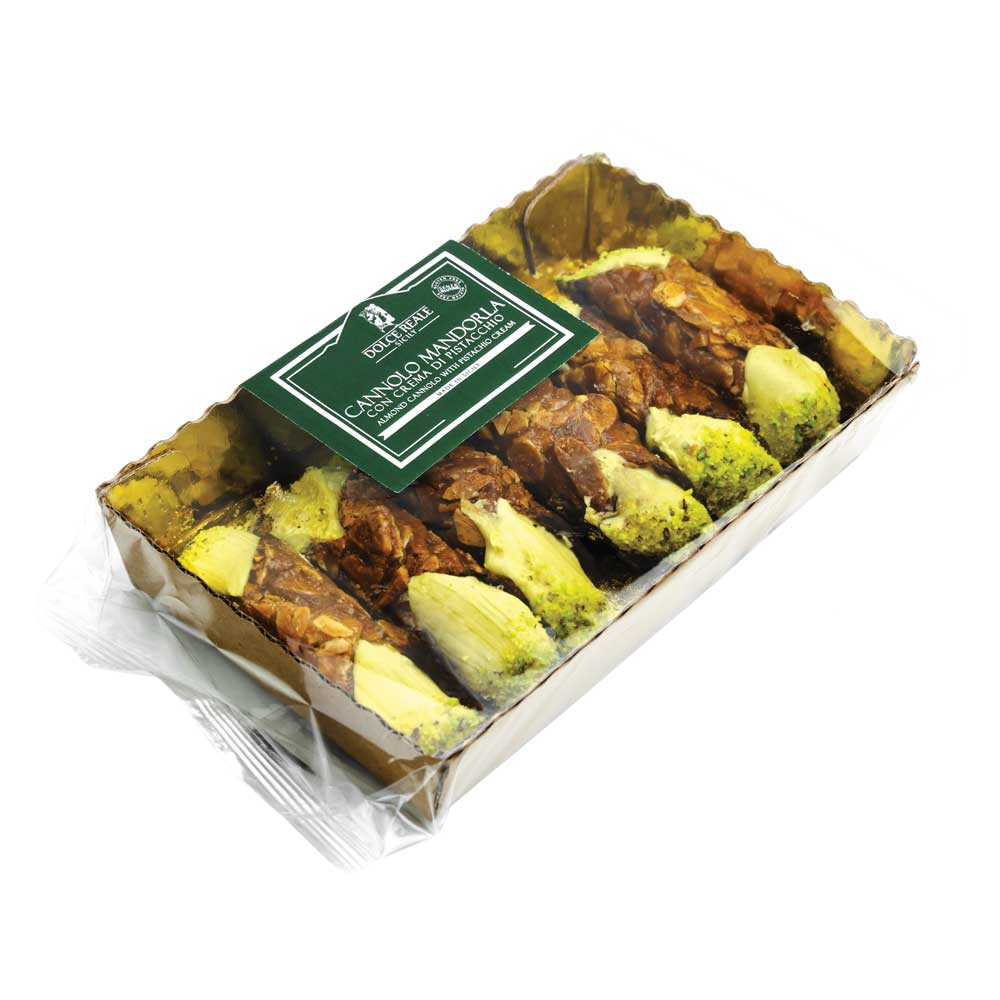 Già farcito con creme a lunga conservazione al gusto di pistacchio.